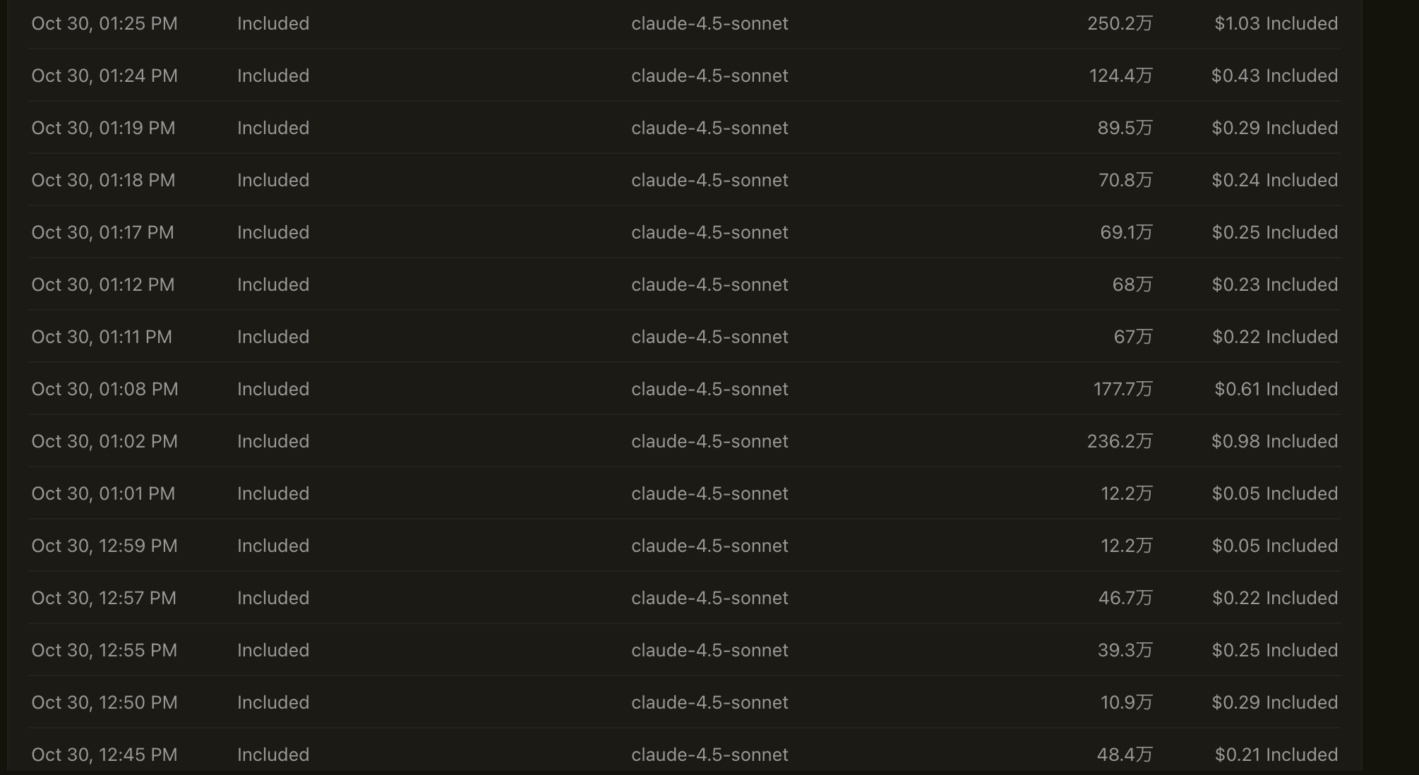 Cursor CLIをメインで使っていた時のトークン数はこんな感じでした。